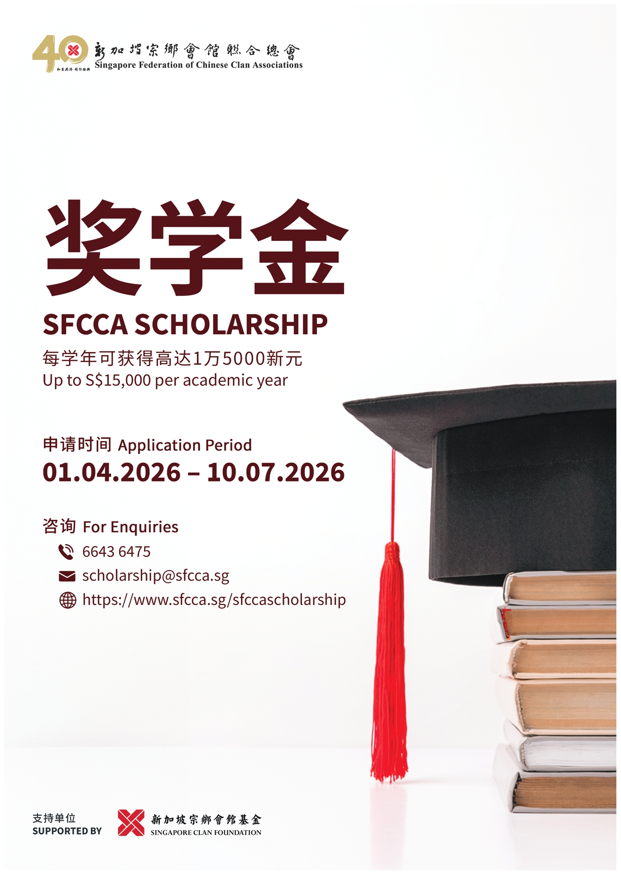为了培养我国双语双文化优秀人才,新加坡宗乡会馆联合总会特设立奖学金,每年资助五名优秀的学生前往中国的顶尖大学攻读本科学位。2026年度的奖学金将从2026年4月1日起正式接受申请。