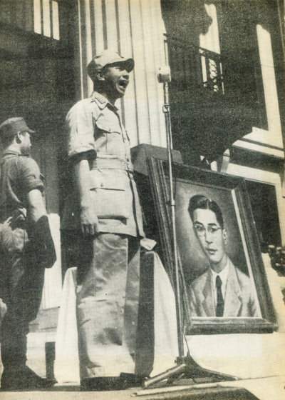 1946年1月13日庄惠泉在市政厅前林谋盛烈士公祭上致词(图源:《国际时报》,1968年3月号)