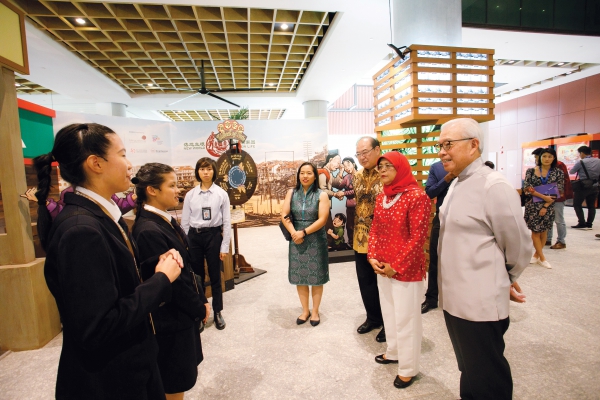 哈莉玛总统(右二)参观“落地生根,开拓新家园”展览,黄鈺清(中)是这项展览的筹划人