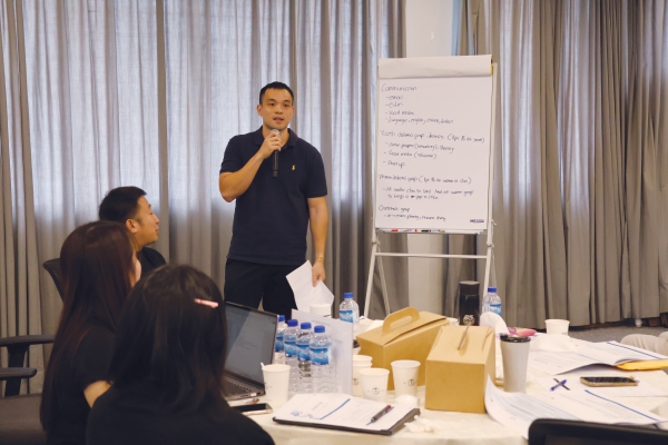曾锦鸿(站立者)在总会举办的工作计划会议上发言