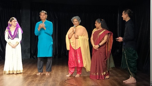 In 2010, a new chapter began at the Nrityalaya Aesthetics Society as a new instructor, Pallavi Sharma, started teaching Kathak and Hindustani vocal music. Pallavi had completed her training in Kathak with Guru Bharti Gupta and Guru Urmila Nagar at Kathak Kendra in Delhi. Pallavi’s first solo performance, Aakanksha (2011), in Singapore drew considerable attention. She went on to continue choreography for several significant productions at Bhaskar’s Arts Academy (BAA), including Anubhava (2013), Advaith (2015), and Manohra (2018). Her later performances in Na Mah (2016) and Marabu–The Forgotten Sentinels (2021) showcased her increasing adaptability. Motivated by Mrs. Santha Bhaskar, Pallavi started exploring Tamil and Malay poetry—languages unfamiliar to her—thereby engaging with Singapore’s multilingual environment and recognising the significance of these creative interactions in our multicultural society. Meenakshy Bhaskar said, “It was especially heartening to see a Chinese student, Zoe Tan, participate in our Kathak training course five years ago. She is hardworking, meticulous, and passionate about Indian culture. That is why she was chosen as the inaugural performer in our Mehfil series to showcase a complete Kathak recital.”