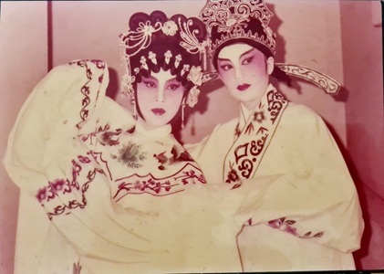 1985年陈昤孜(左)首次担纲演祝英台,与阿姨朱少芬合演折子戏《梁祝之楼台会》