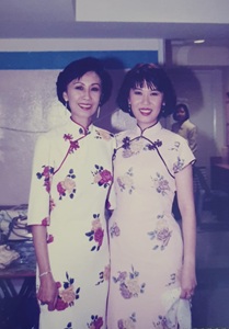 1997年,陈昤孜和母亲朱敬芬在《声艺争辉》后台准备出场合唱时留影