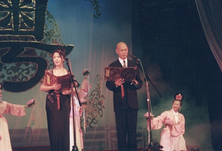 2003年,陈昤孜在《粤韵献温情》慈善晚会中与罗家英博士合唱《杨枝露滴牡丹开》