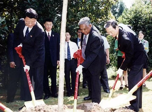 2001年,纳丹总统(中)到访武夷山,种下一棵象征中新友谊的树