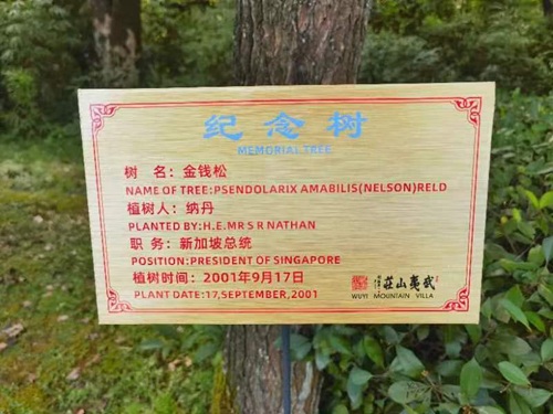 在武夷山庄国际友人纪念树林内,屹立着一棵意义非凡的树。它静默而坚定,见证着新加坡与武夷山自2001年至2025年长达二十五载的深厚情谊,也成为两地友谊随时间不断生长、持续深化的生动象征。