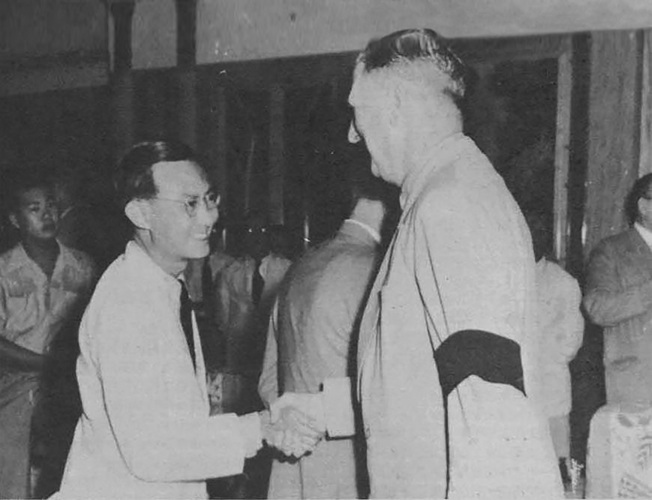 1940年代新加坡总督金森爵士(右)接见李金泉(图源:新加坡国家图书馆)