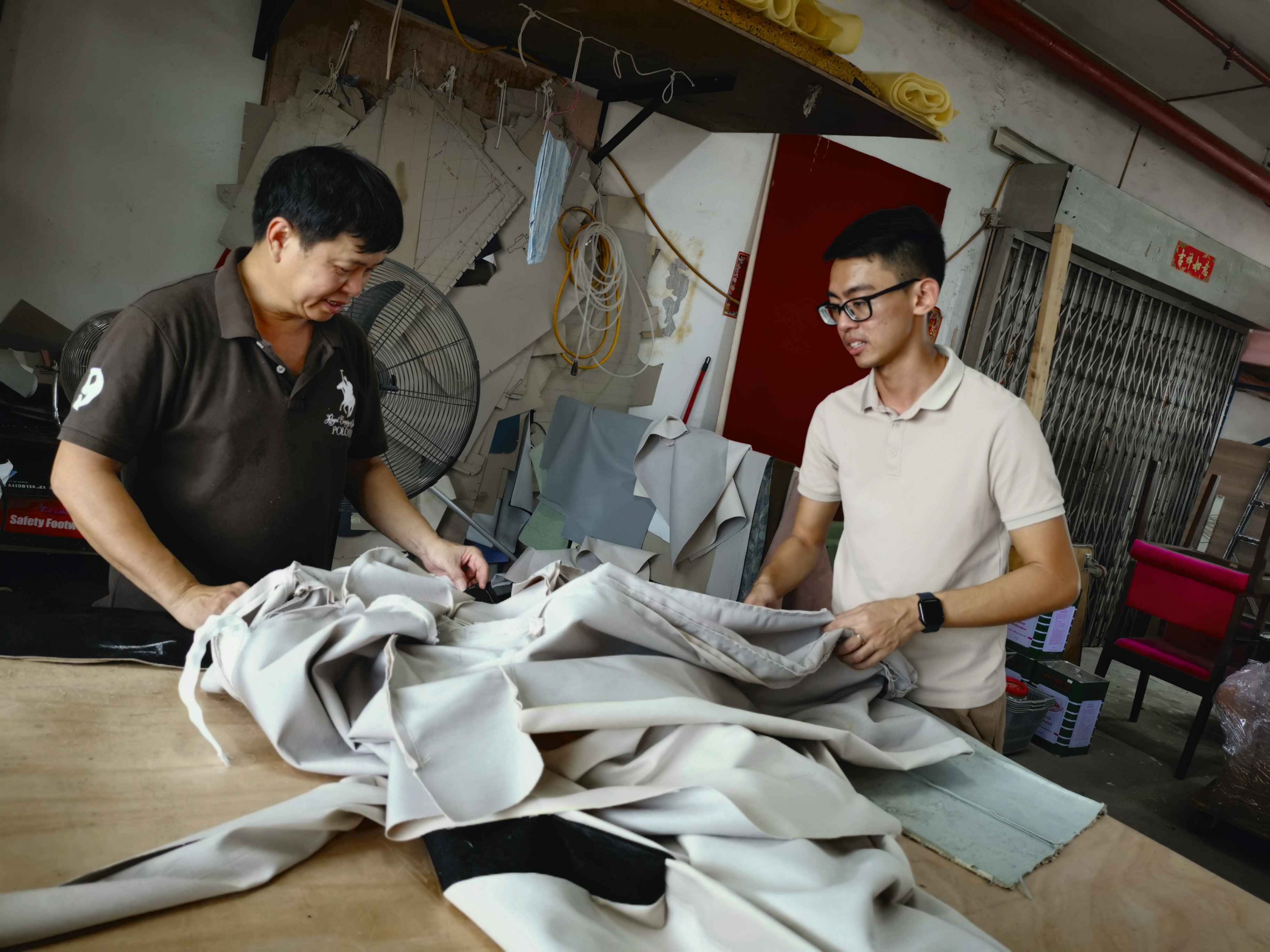杨征栋与家具修复的缘分,始于马来西亚的学徒岁月。18岁的那一年,他来到新加坡打工,21岁的时候,在工作上结识了准备退休的源利沙发制造厂老板,杨征栋当时的老板接手了源利工厂,他便随着现在的老板继续这门手艺。