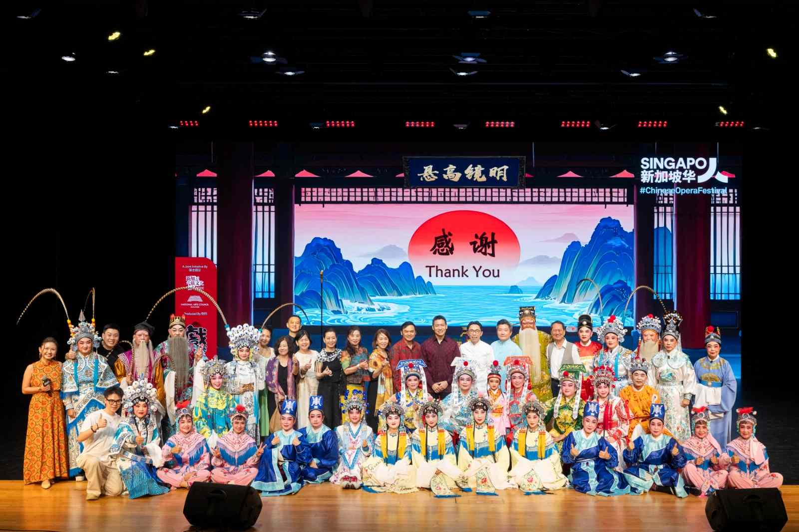 《包公误》演出后,与文化、社区及青年部代部长兼教育部高级政务部长梁振伟(后排第十位)合影,林楚强在后排右数第七位