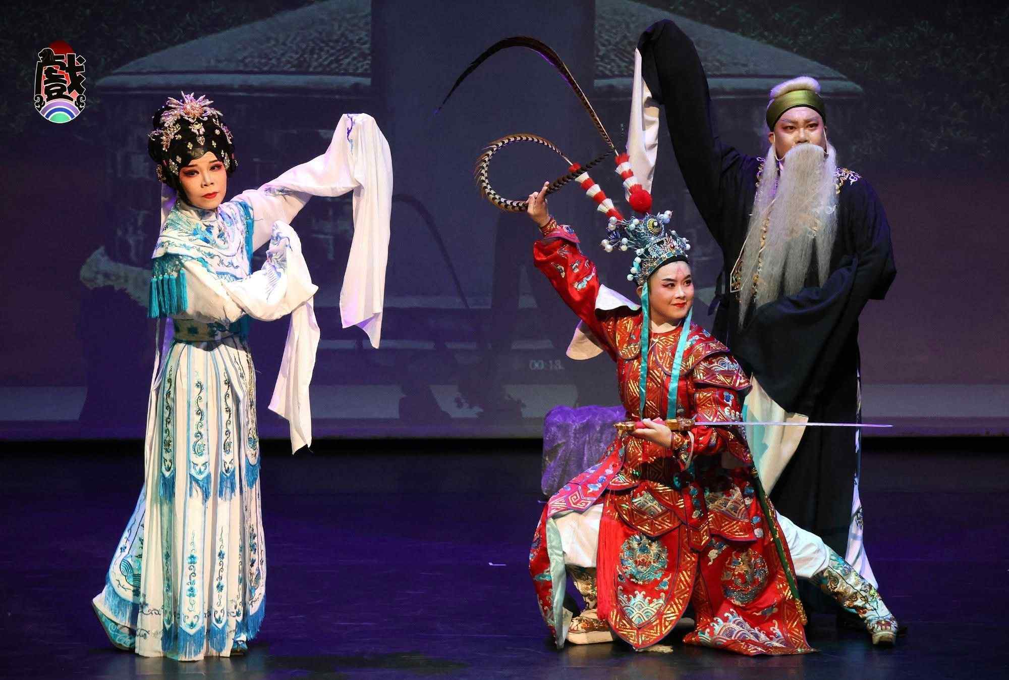 《赵氏孤儿》里,林楚强(右)饰演程婴,-马清清(左)饰演庄姬公主,陈丽云饰演孤儿