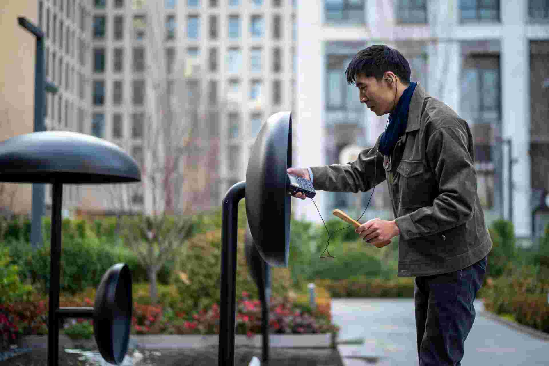 林亿在中国创作谱曲一首古诗,到户外去采集“锣”的声音。