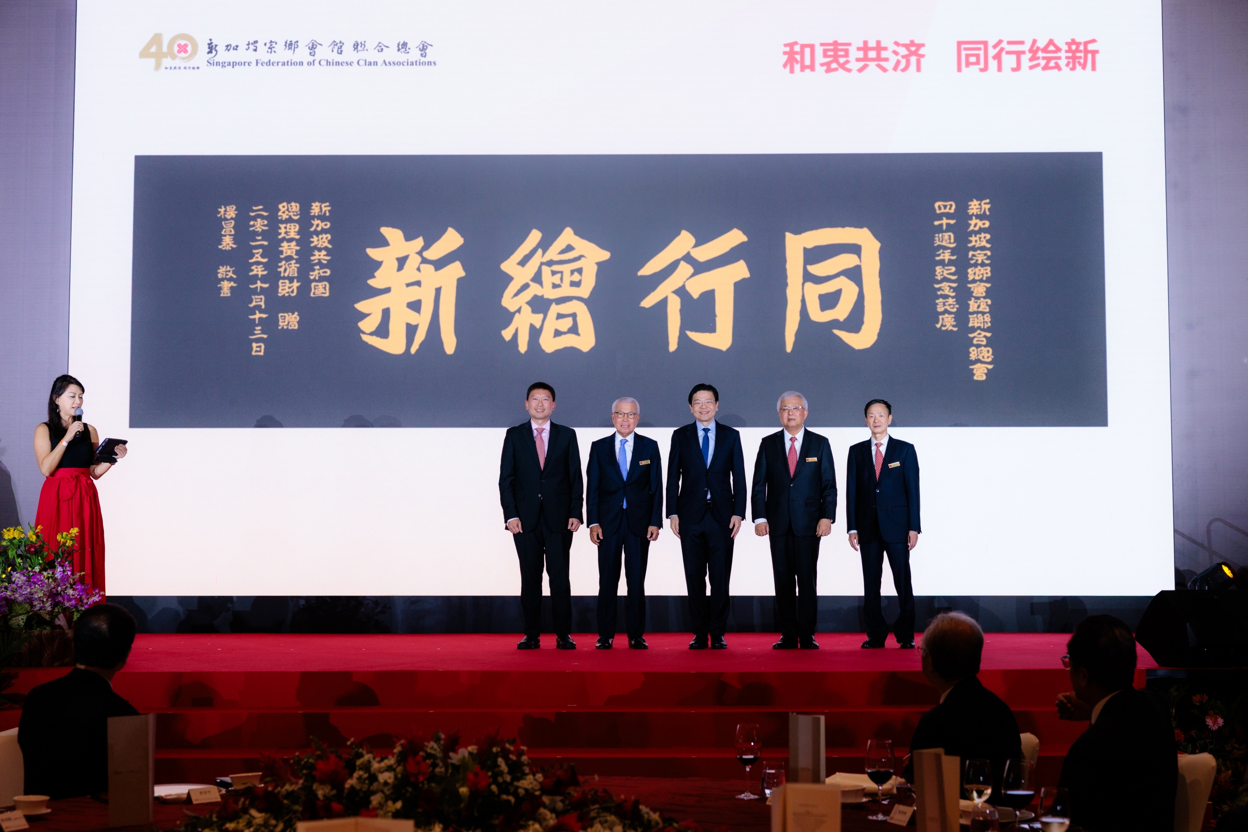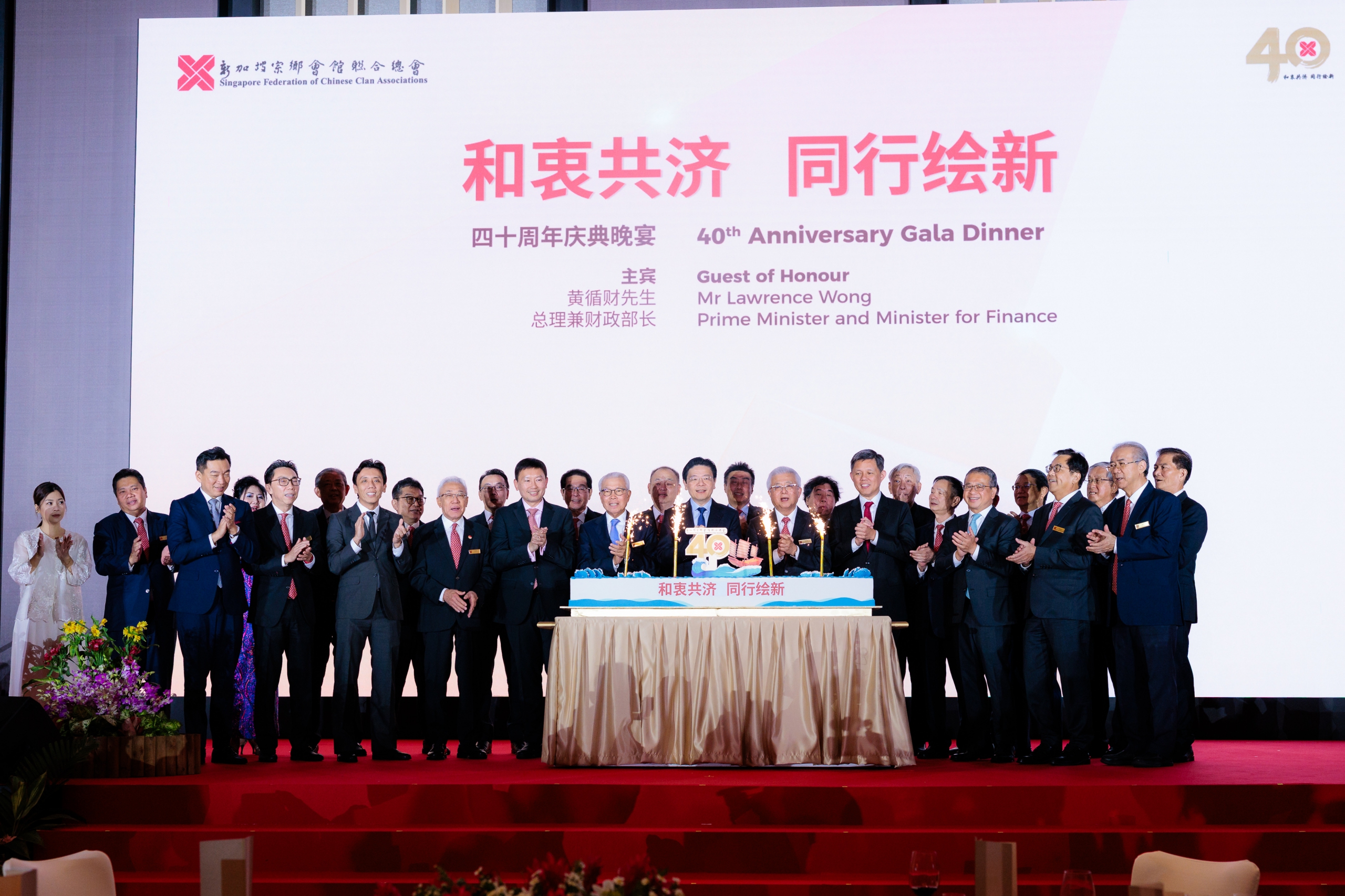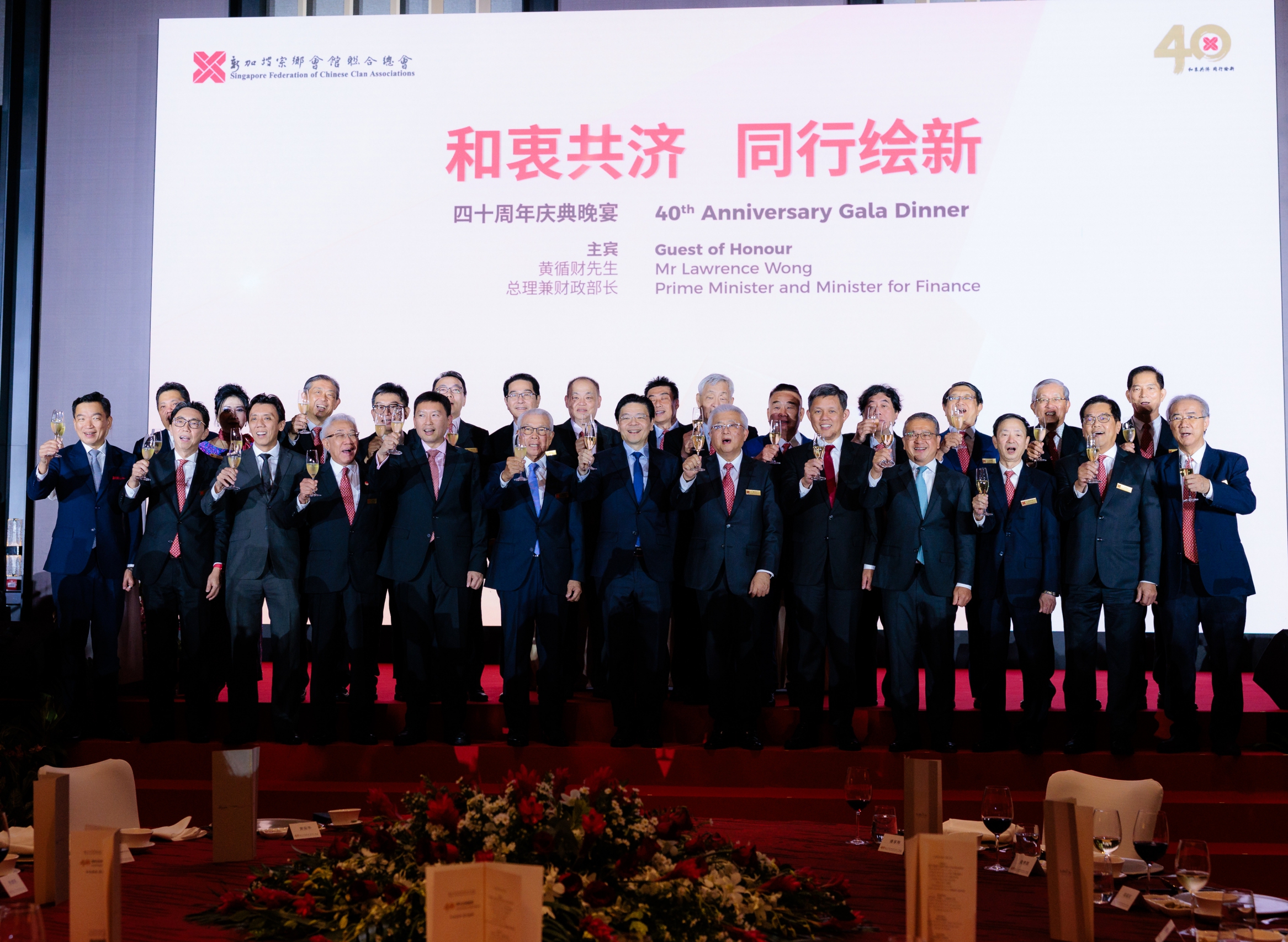 Singapore, 13 October 2025 — Singapore Federation of Chinese Clan Associations (“SFCCA”) hosted a gala dinner this evening at the Fairmont Ballroom, Raffles City Convention Centre, to celebrate its 40th anniversary. The dinner was attended by 1,000 guests, including SFCCA’s Patron, Prime Minister and Minister for Finance Mr Lawrence Wong, who officiated the event as Guest of Honour, together with Ministers, Members of Parliament, and other distinguished guests.