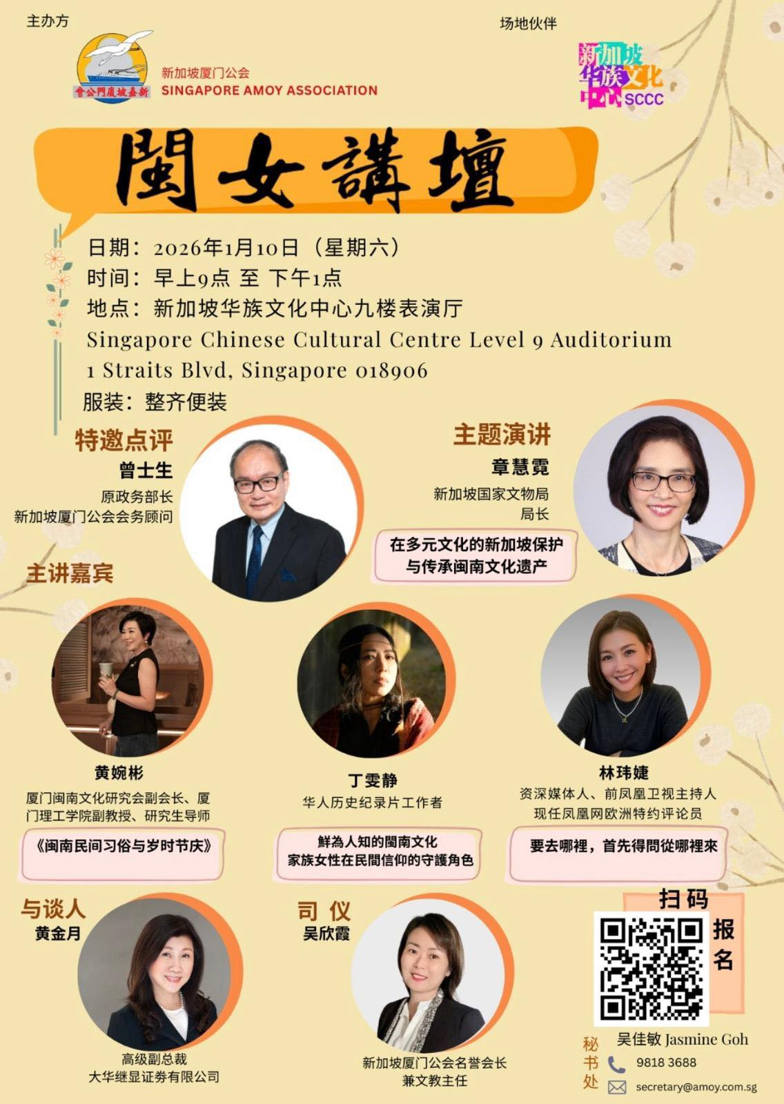Singapore Amoy Association welcomes you to attend their forum! This forum seeks to offer the public a different lens through women’s narratives to better understand Minnan culture, deepen cross-cultural exchange, and further enrich the overall multicultural narrative of Singapore.