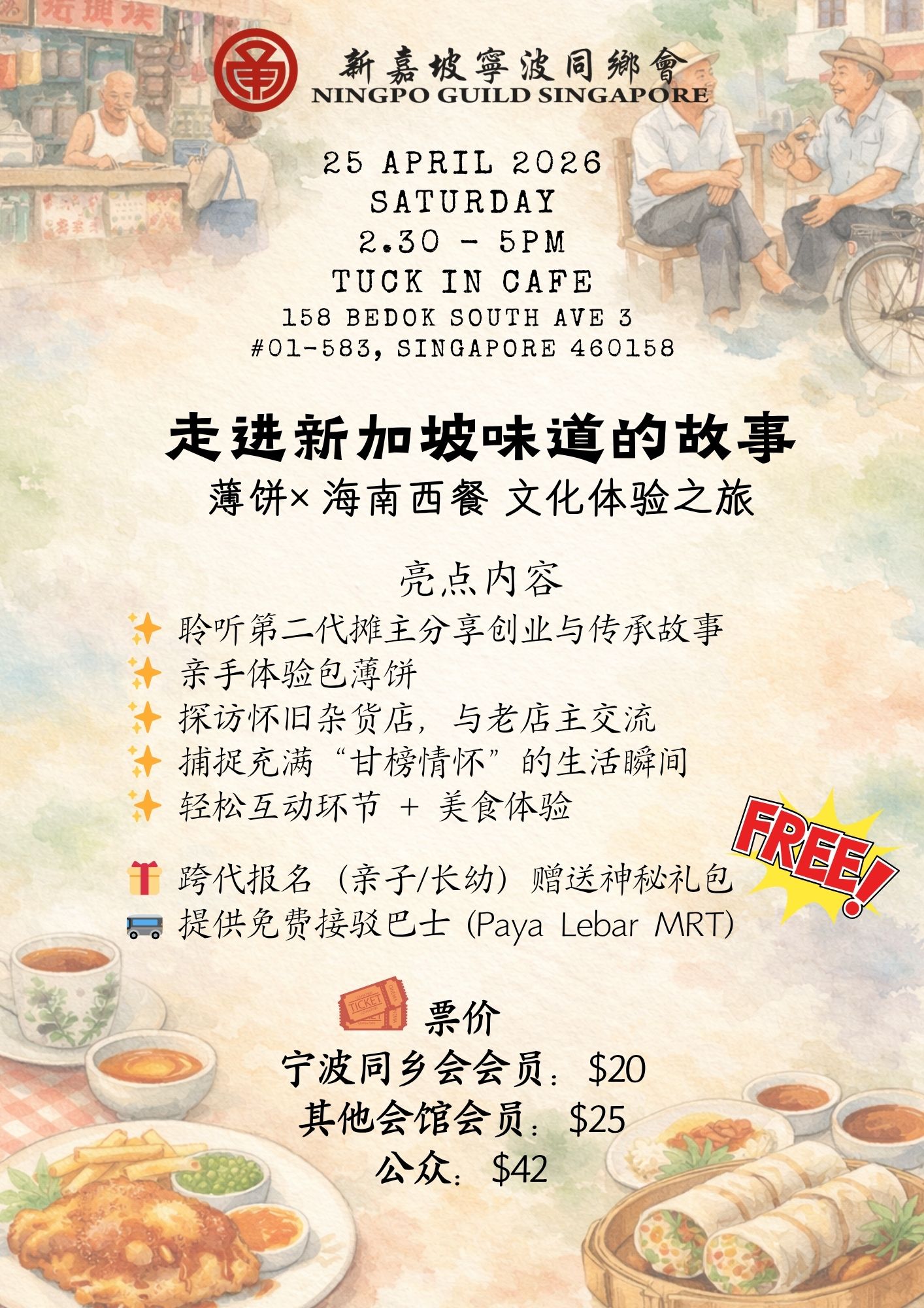扫描海报二维码购票:https://www.eventbrite.sg/e/a-taste-of-time-popiah-hainanese-food-heritage-journey-tickets-1986179174377?aff=Poster